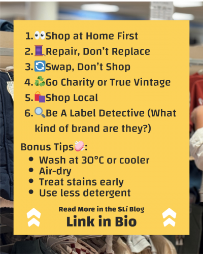 At Slí we’re all about empowering you and your Waterford community to make sustainable decisions. We believe in living lighter, loving local, and making choices that actually matter—for people and the planet. So before buying that jumper you think you need, try these 6 simple steps first – you’ll even save money!